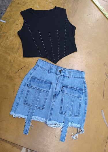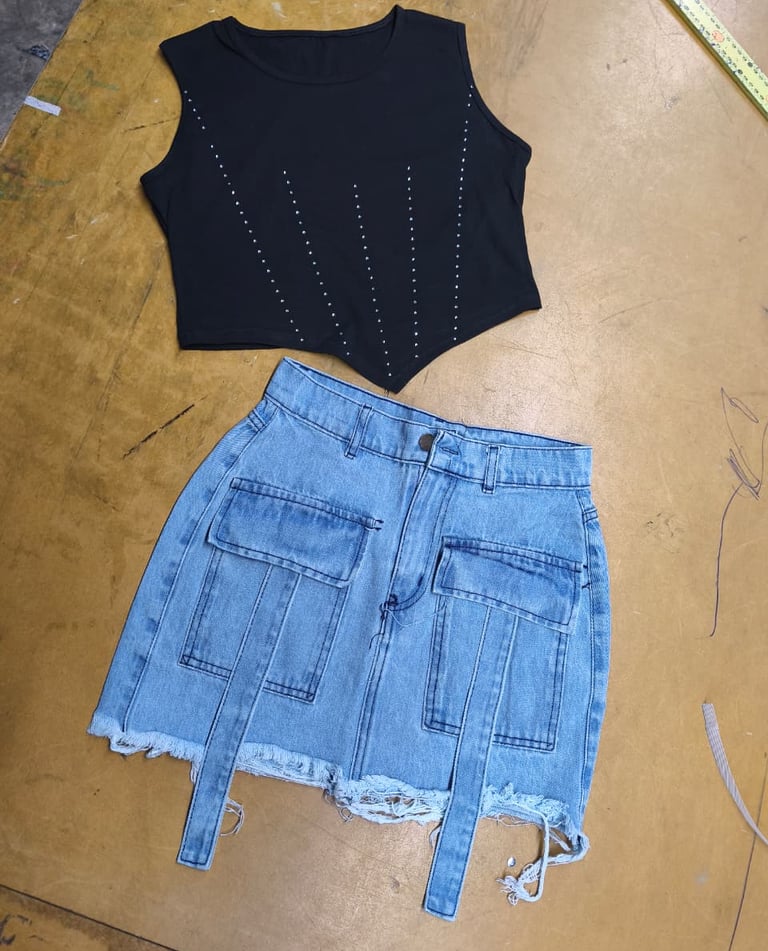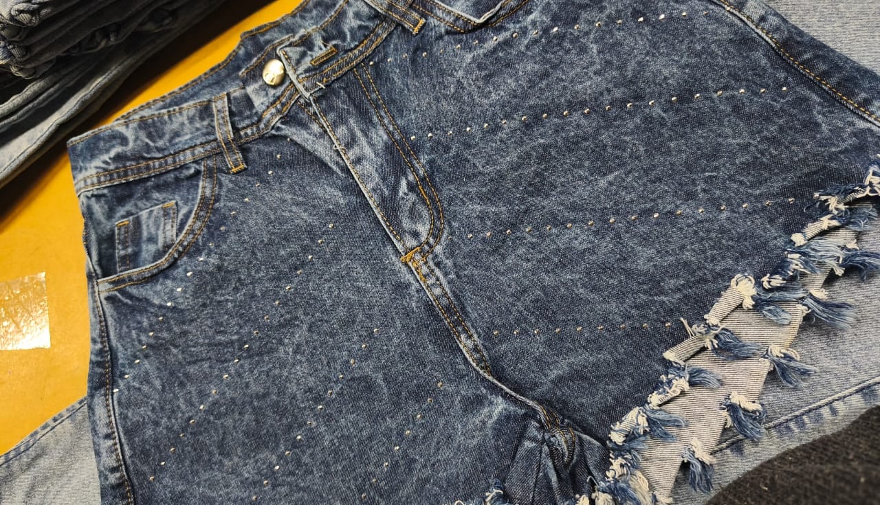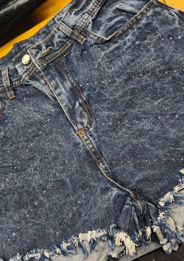 Short de mezclilla urbana con detalles de strass brillantes. Perfecto para destacar tu estilo en cualquier ocasión. ¡Comodidad y moda en uno!